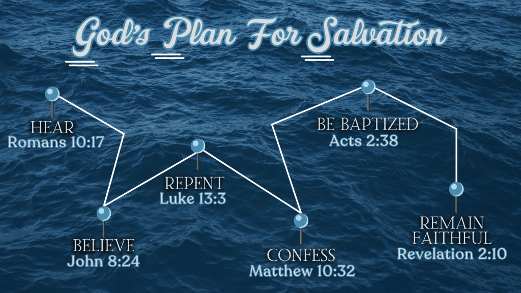Gods Plan For Salvation “What must I do to be saved?” Here are 6 simple yet effective steps to being saved in the Church of Christ: Ready to make that next step? I’m Ready! Share this: Click to share on X (Opens in new window) X Click to share on Facebook (Opens in new window) Facebook Like Loading...